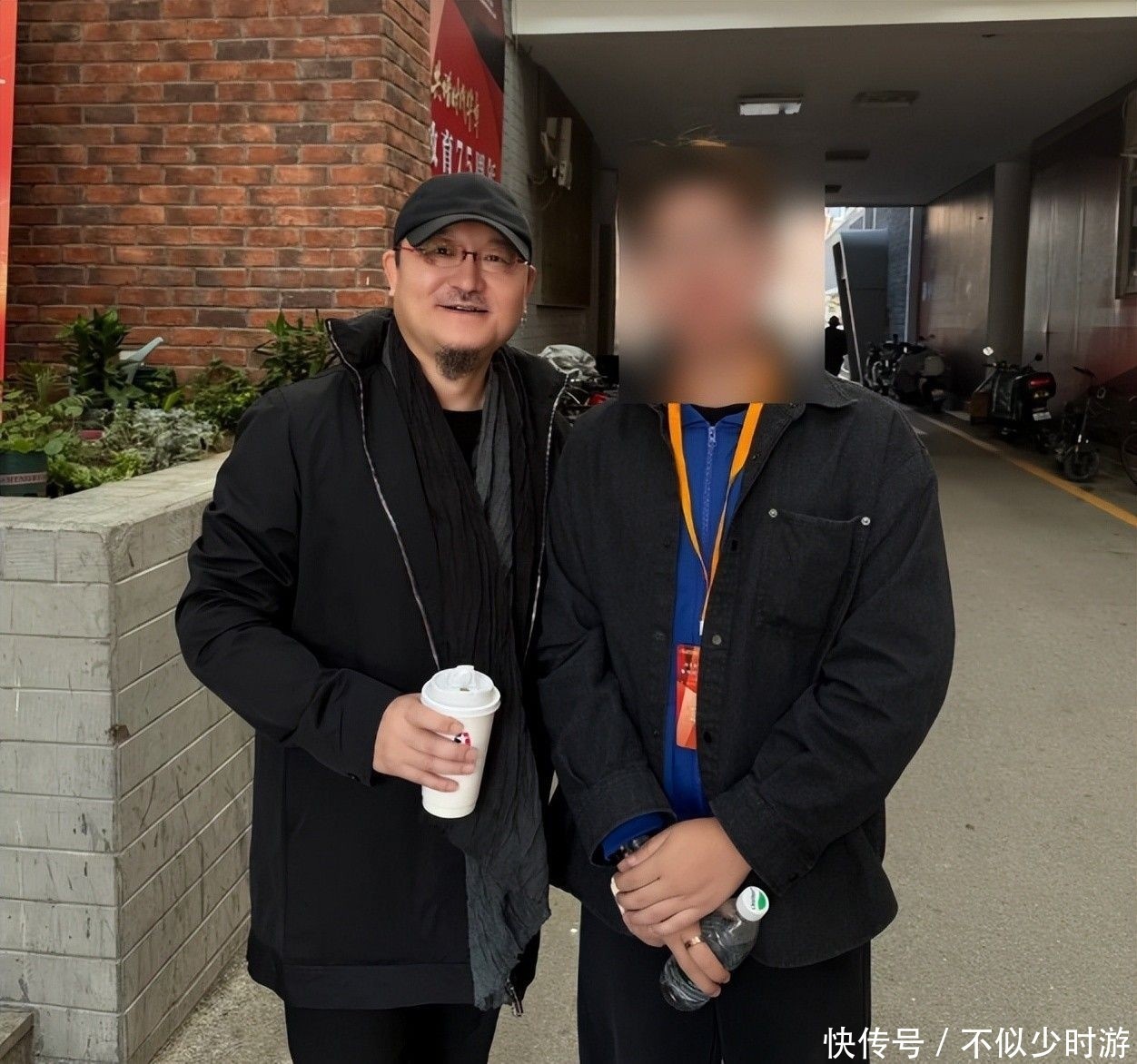 合影时站姿挺拔,面对镜头笑容满面,丝毫没有“大导演”的威严感。