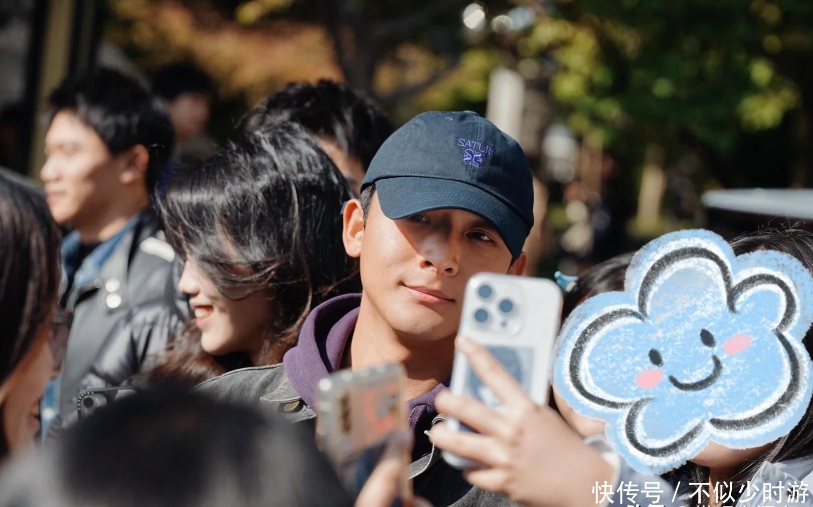 身为当红演员,他却没有半点疏离感,面对合影请求毫不犹豫停下脚步,甚至主动拿起手机帮粉丝拍照。