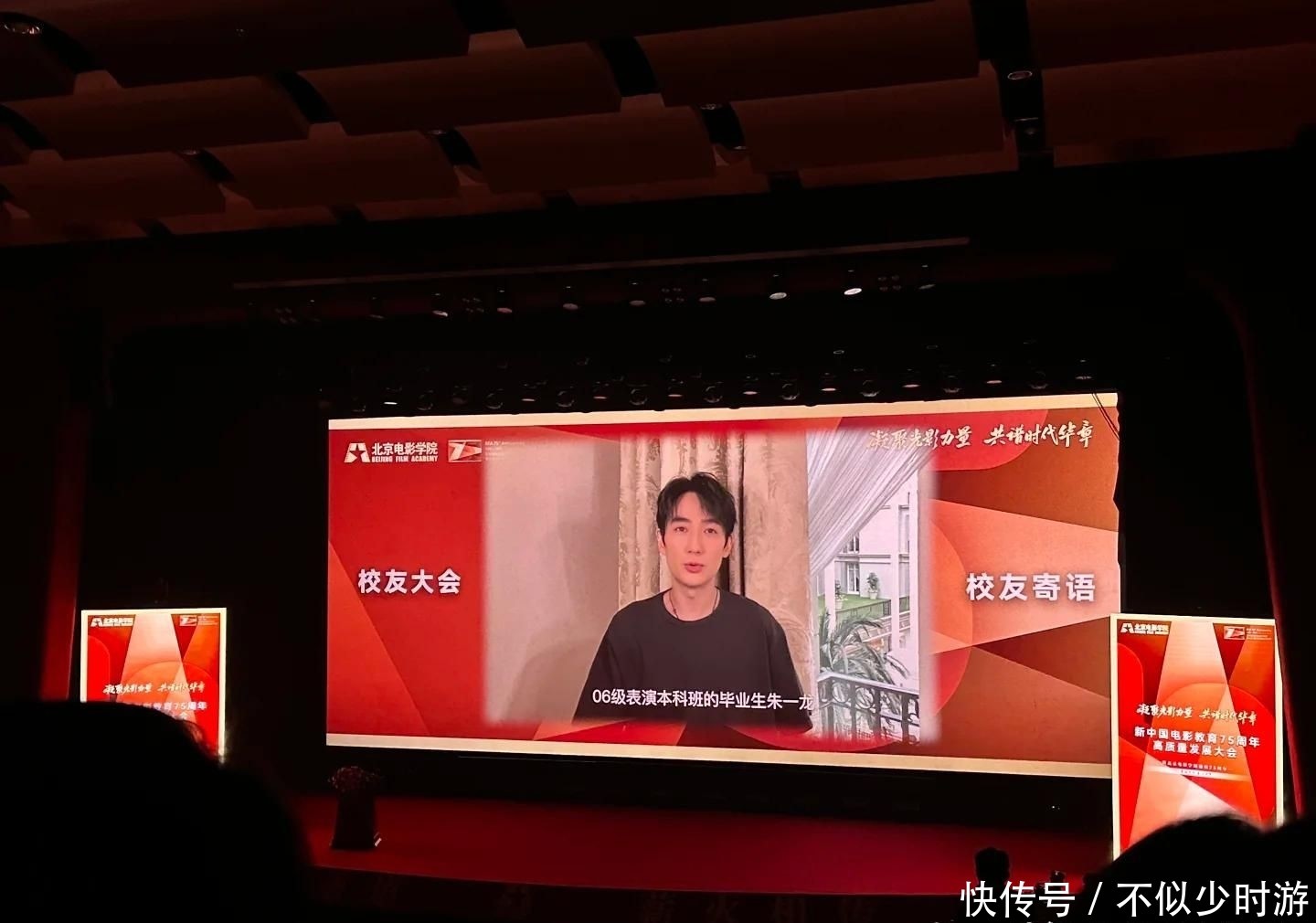 他神情庄重地说道:“祝母校75周年生日快乐,愿学弟学妹们都能实现自己的电影梦想。”
